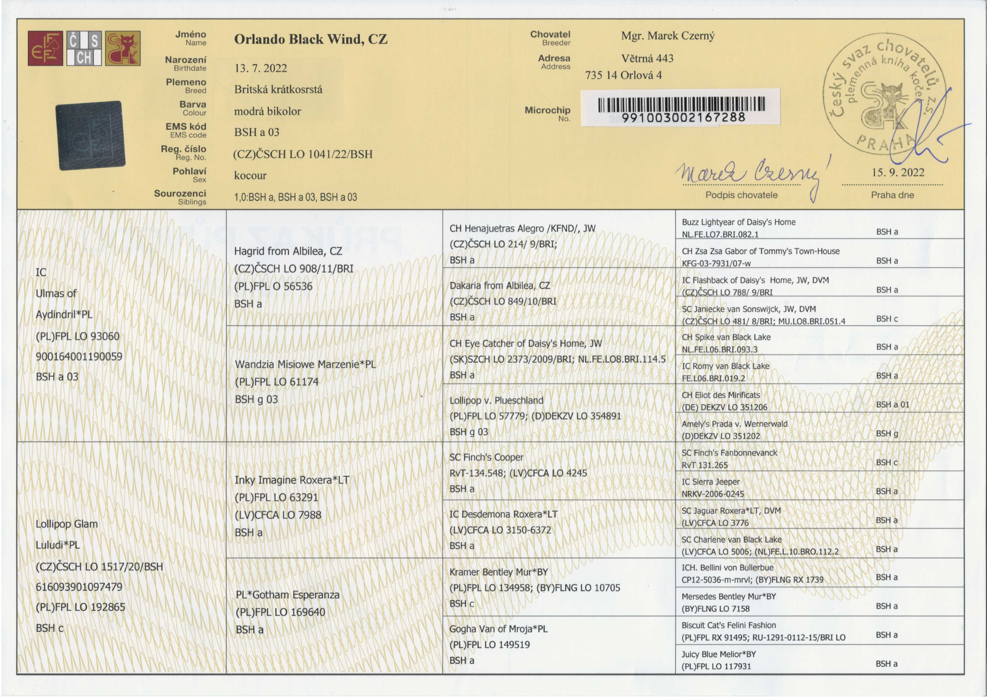 Rodokmen →Kocoura na krytí jiným CHS neposkytujeme